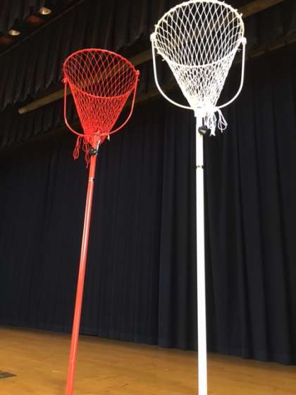 みんな、自分の身長よりも高いネットの中めがけてたくさんの玉を投げています。
