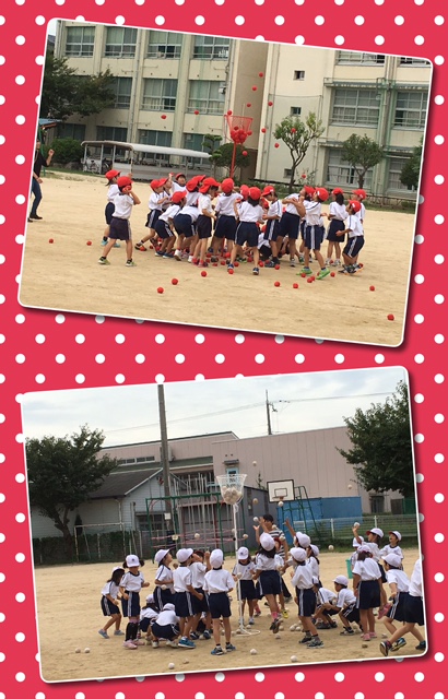 運動会の練習では、ダンスだけでなく玉入れの練習もしています。