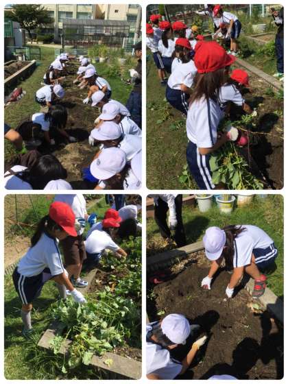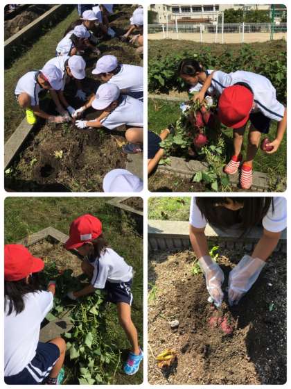 収穫したお芋は、来週、学習参観の日に、焼いて食べたいと思います。