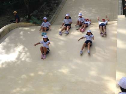 様々な滑り台があり、子どもたちはのぼってはすべり、またのぼってはすべりを繰り返していました!