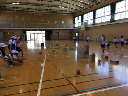 狙った方へボールを投げる力や、勝ち負けにこだわらずチームで協力することの大切さを勉強しています。