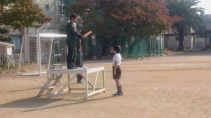 ※写真は、児童会代表の児童に、校長先生より感謝状を受けとる様子です。
