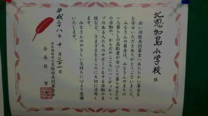 10月末に、児童会の子どもたちが主催で、赤い羽根共同募金を行いました。みなさんの小さな心遣いがたくさん集まって、たくさんの募金が集まりました。