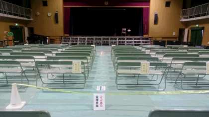 椅子の前の方は、発表学年の優先シートです。譲り合って、ご覧ください。
