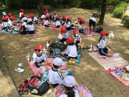 お弁当の時間。いつもの給食の時間より少し早い昼食です。