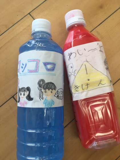 その後、2色をまぜあわせ、好きな色の水をつくりました。