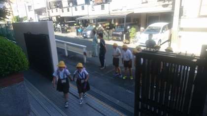 学年ごとに、玄関でみんなが気持ちよく挨拶できるように、挨拶をする運動です。