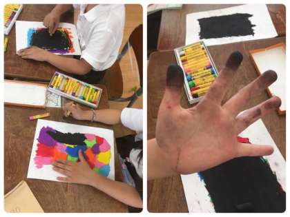 先週、図画工作科では、パスを使ってふしぎなつぼを作りました。