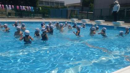 プール開き。1年生にとっては、初めての小学校のプール学習。