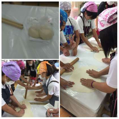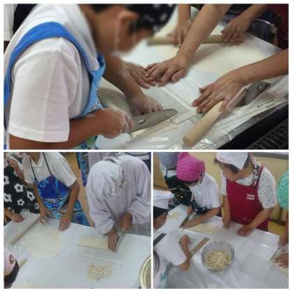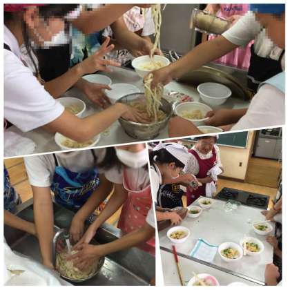 6月30日の3〜4時間目に、6年生は地域の方に教えたいただきながら、うどん作り体験の学習をしました。