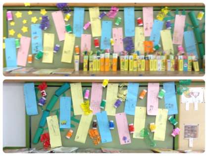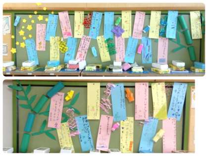 7日の七夕の日、願いごとを短冊に書き、七夕かざりを作りました。