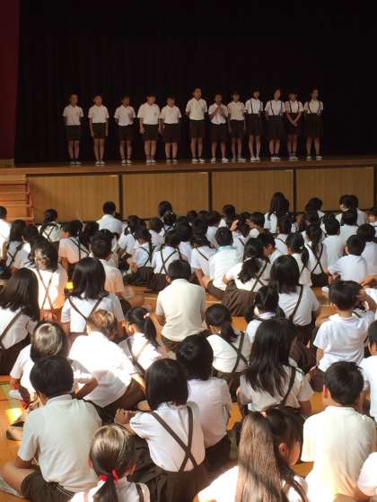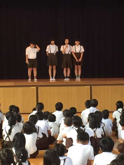 児童集会で、放送委員会の発表を行いました。