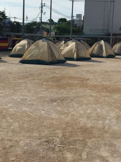 学校の中にテントをたてて、学校に宿泊。参加した子どもたちは、貴重な体験をたくさんできて、思い出になったようです。