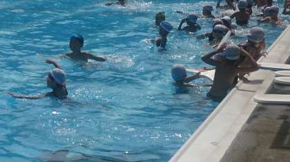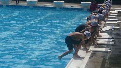 夏休みの7月21日から、水遊び、水泳の学習をしています。
