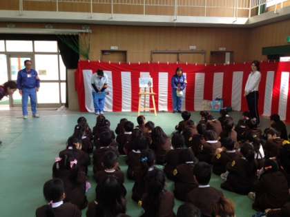 大正区役所の地域安全防犯”ツージィ隊”の方が、1年生に向けて安全についてお話をしてくださいました。毎日の登下校でお世話になります。これから、1年間よろしくお願いします。