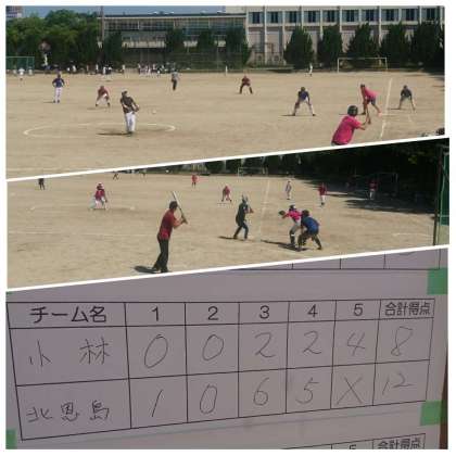 切れのよいピッチャーのボールと、打線の繋がりで、12対8で、北恩加島チームが快勝しました。