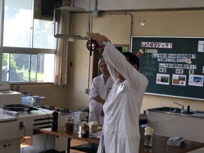 火曜日、しょう油の出前授業がありました。しょう油の作り方、原料、香りの種類など、いろいろなことを教えていただきました。最後に、もろみ、しぼりたての生しょう油、出来上がったしょう油の試食をしました。それぞれで味や香りも違っていて子どもたちの好みも様々でした。