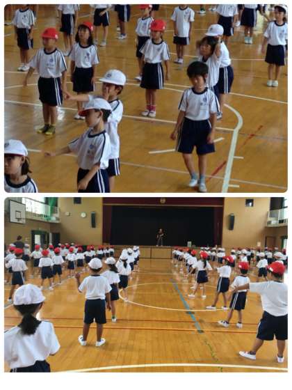 今年の1年の演目は、「チャンス☆やってみよう(団体演技)」「玉入れゴーゴー(団体競技)」「かけっこ(個人走)」です。早速、運動会の練習が始まりました。
