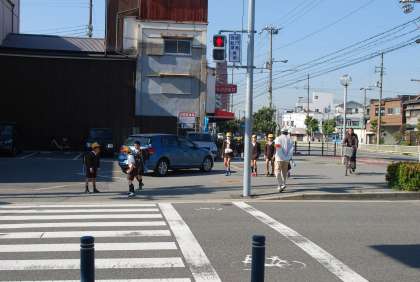 しかし、北恩加島小学校の周辺には、大きなトラックやバスが走る大きな通りや、車がたくさん通る道路があります。とても心配なのですが、大きな事故がおきないか、信号はきちんと守れているか。を見守ってくれる“安全サポート隊”の方々が、いくつもの交差点で登下校を見守ってくれているのです。