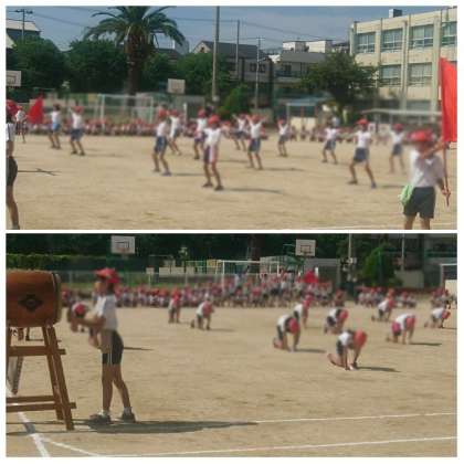 学級や講堂では、練習をしていましたが、運動場では今日がはじめてでした。応援のときの動きのイメージが今日やっとできました。