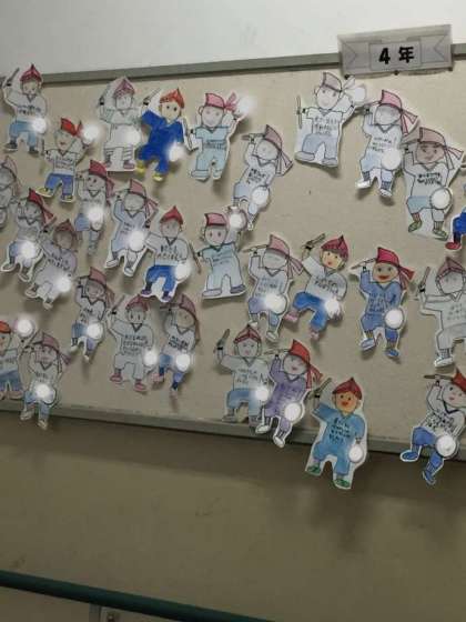 4年生の掲示板には、エイサーしている様子の掲示をしています。