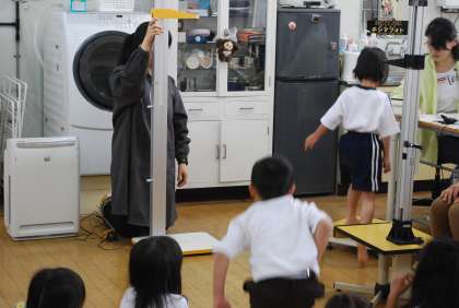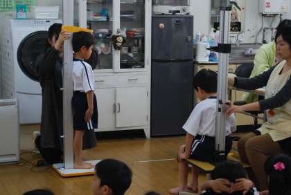 今日は1年生の三測定・視力検査でした。友だちが身長、体重、座高を計測している時もきちんと座り、お行儀よく待つことができました。