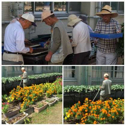 グリーンサポート隊のみなさんは、今日は、種を植えて育ってきた小さな苗の手入れをしてくださいました。