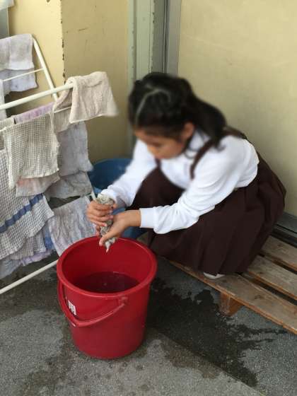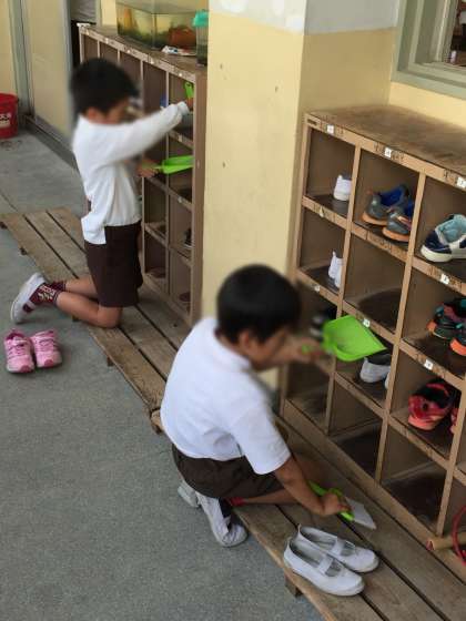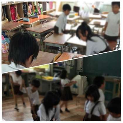 昨日、お掃除教室の出前授業で学んだことを活かして、いつもより丁寧に掃除をしていました。