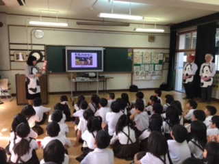 まずはじめに、多目的室にて牛乳についてのお話を聞きました。