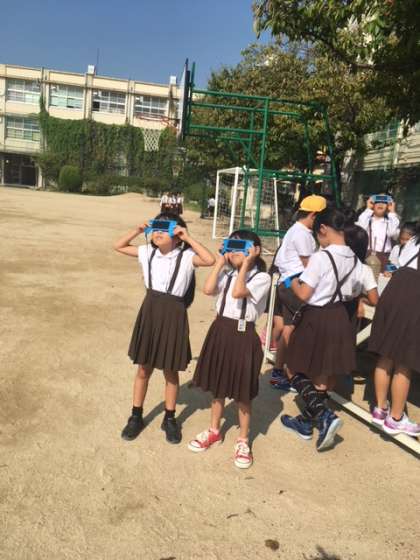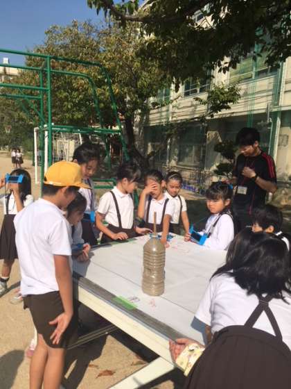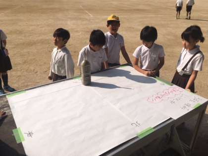 かげと太陽の位置を毎時間確かめながら、学習をすすめました。
