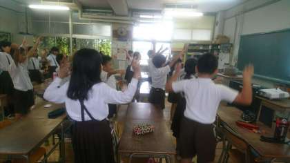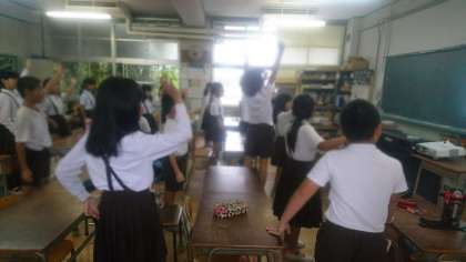 音楽をきき、英語で歌いながら体を使って楽しんでいます。
