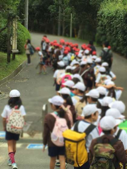 駅から、長い距離を山の様子を眺めながら、歩いています。