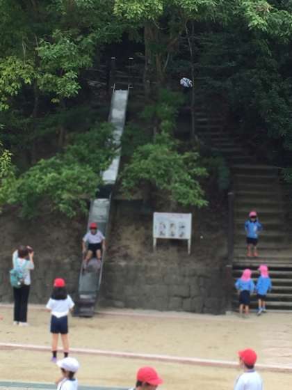 滑り台ひとつを滑るのに、長い階段をのぼらなければなりません。