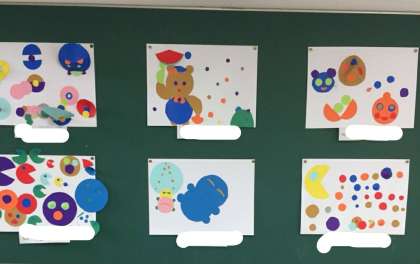 身の回りの丸い形をかたどって、丸をかいたもの。それを活かしてイメージして作った作品です。