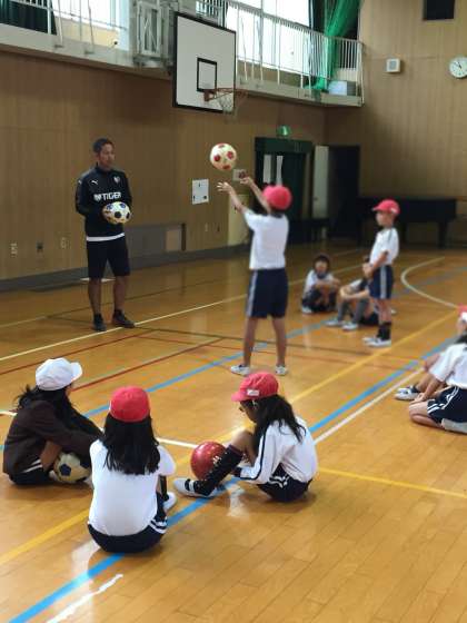 ボールの蹴りかたや、パスの回しかたのコツから、教えていただきました。