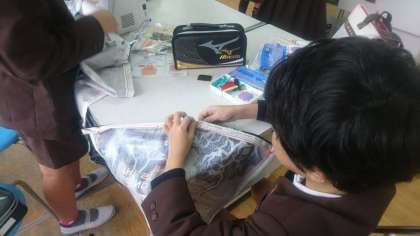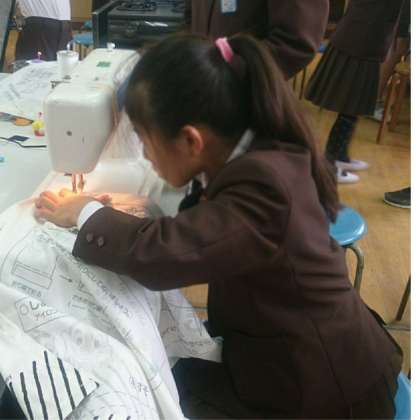 先日の授業参観で、エプロンづくりの様子をみていただきました。お手伝いをいただきました保護者の皆さま、ありがとうございました。