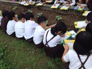 3年生の学習で使用するためのキャベツの苗を植えました。