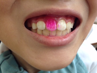 しかし、歯垢が見える赤い液体を歯に塗ってもらうと、、、