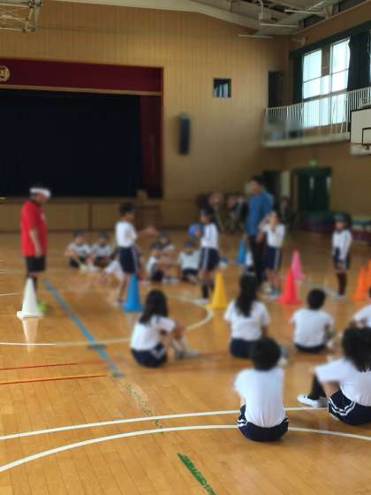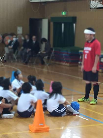 アイマスクをつけてボールを投げたり、キャッチしたりする体験です。