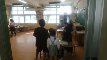 5年生は、歩くスピードを考えて歩いたり、優しく声をかけたりして、検診を受ける子どもたちに安心してまわれるように、接していました。