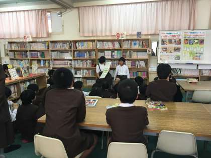 金曜日、図書係の児童が読み聞かせをしてくれました。今週の本は、『ちか100かいだてのいえ』でした。