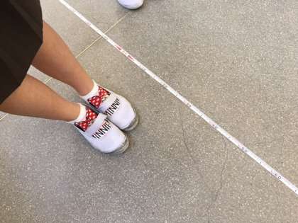 月曜日、5年生は算数科で「平均」の勉強をしています。応用編ということで、自分の歩幅の平均を使って、廊下などの距離を大まかに計算するというものです。休み時間には、運動場の距離を測っている子もいました。