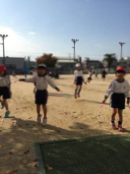 リズムにのって、縄に引っ掛からないようにと、がんばっています。