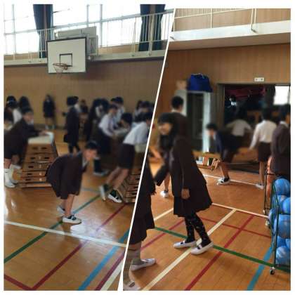 6年生は、来週からはじまる、作品展に向けて、体育館の準備をしてくれました。