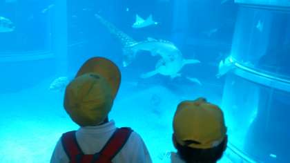 ジンベイザメやアシカやラッコ、たくさんの生き物を見つける度に大歓声があがっています!