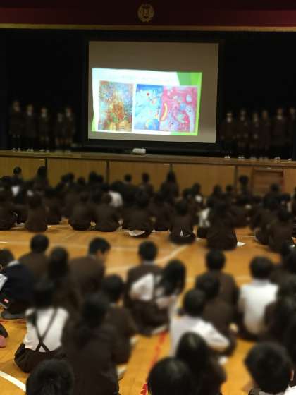 今日の児童集会(ハッピー集会)は、図書委員会の発表でした。