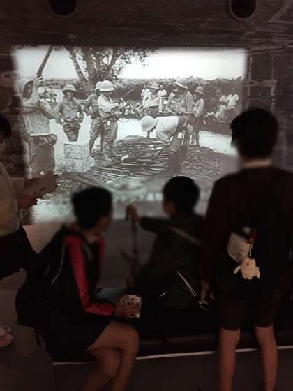 ピース大阪では、展示物や映像から戦争の事や平和について学びました。