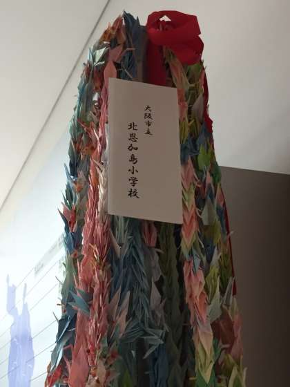 ピース大阪に、北恩加島のみんなで折った千羽鶴を渡してきました。