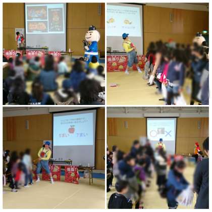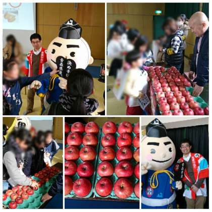 前半のりんごマンの話もよく聞いていて、クイズ正解者が多かったので、りんごのお土産をいただけることになりました。