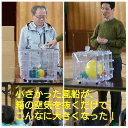 風船の大きさも…、あらあらこんなにも、大きくなりました。